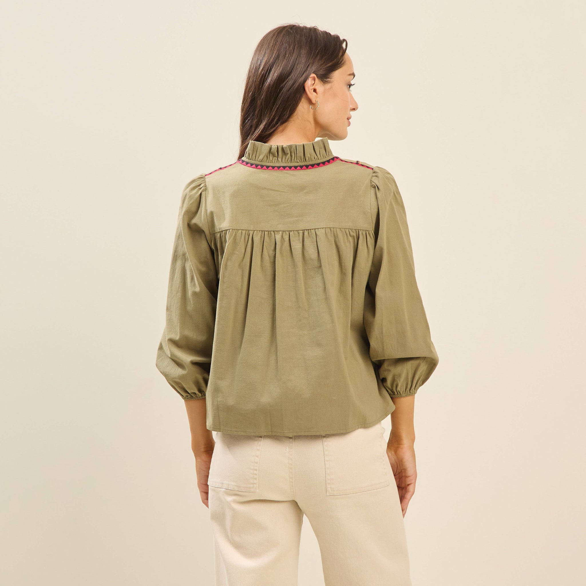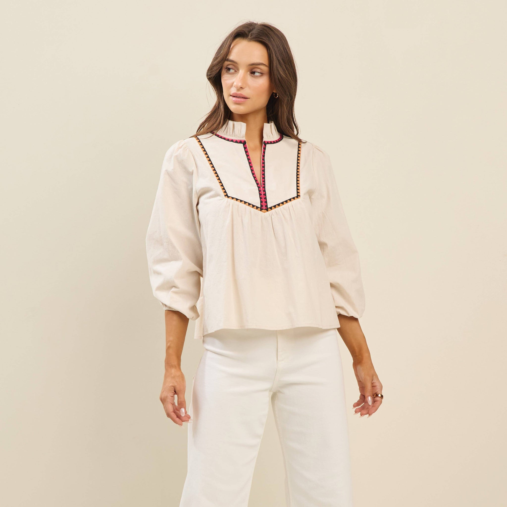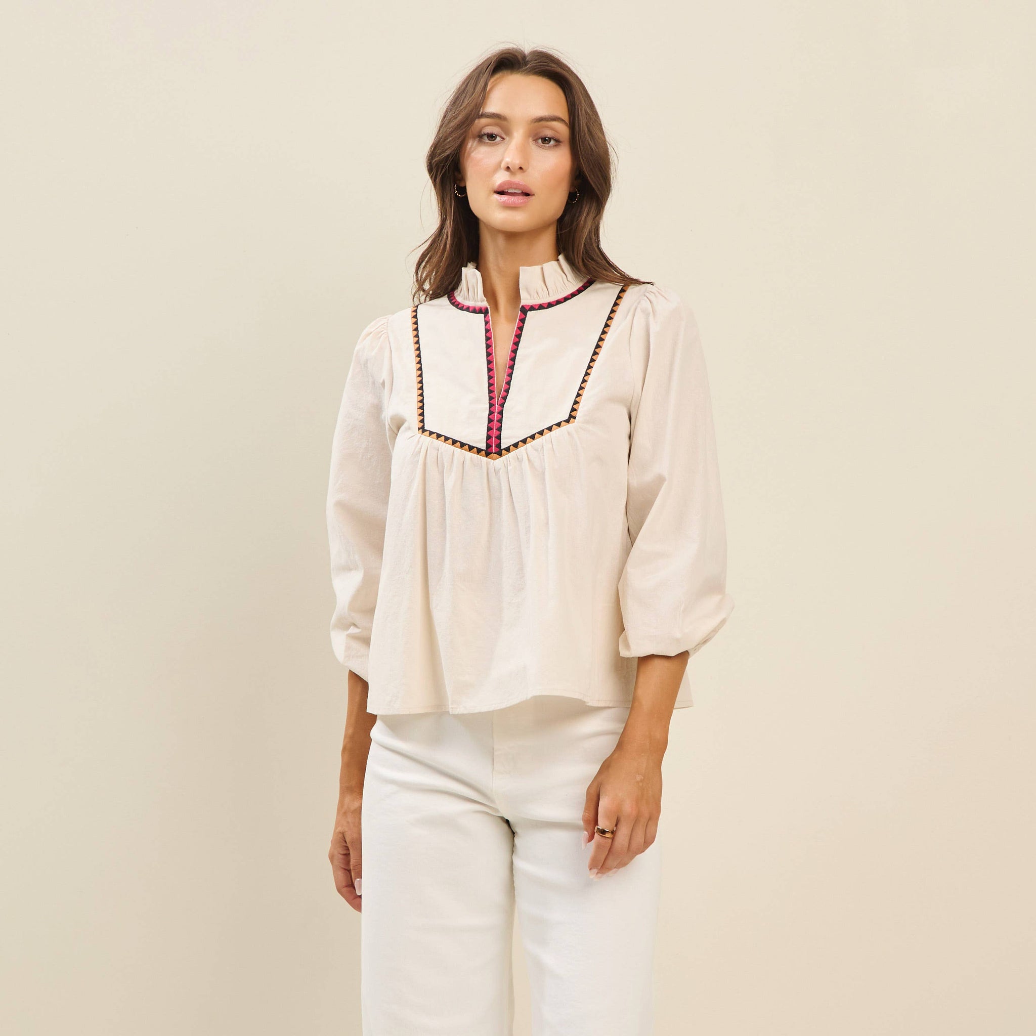 Brighten your outfit with this Embroidered Bib Front Top! Featuring charming embroidery and a flattering bib design, it's perfect for adding a touch of fun and flair to your look. Comfortable and stylish, this top lets you play up your wardrobe with effortless cool.