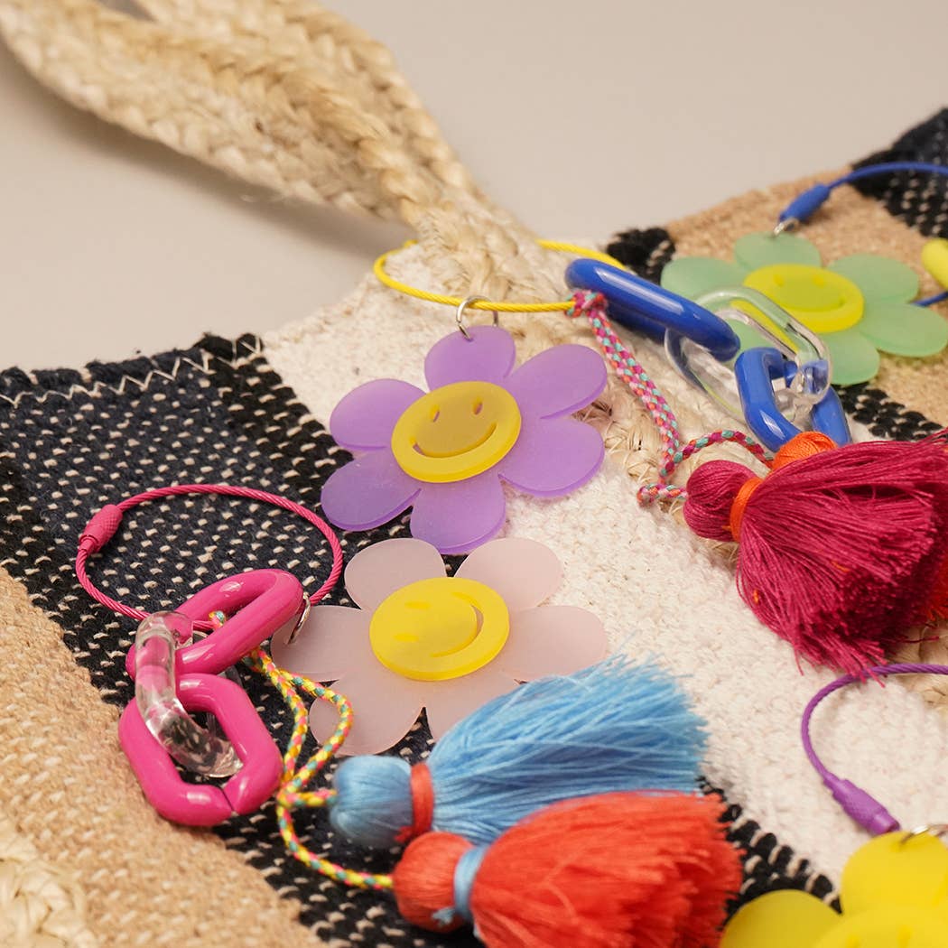Happy Face Flower Chunky Chain Keyring Bag Charm