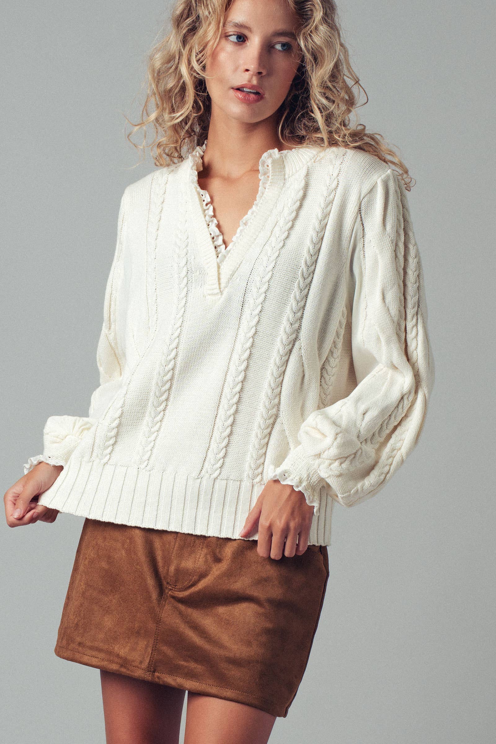 Wrap yourself in cozy charm with this Lace Trim Cable Knit Pullover Sweater. Its delicate lace edging adds a flirtatious touch to the classic cable knit design, making every cold day feel a little sweeter. Perfect for snuggling up or stealing hearts, this sweater blends warmth and whimsy effortlessly.