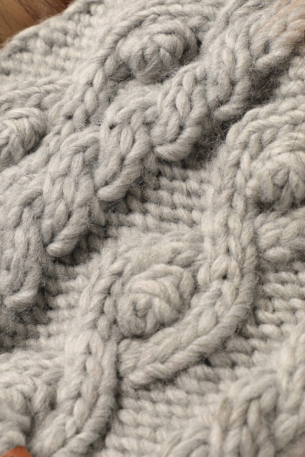 Popcorn Trim Knit Beanie w Faux Fur Pom