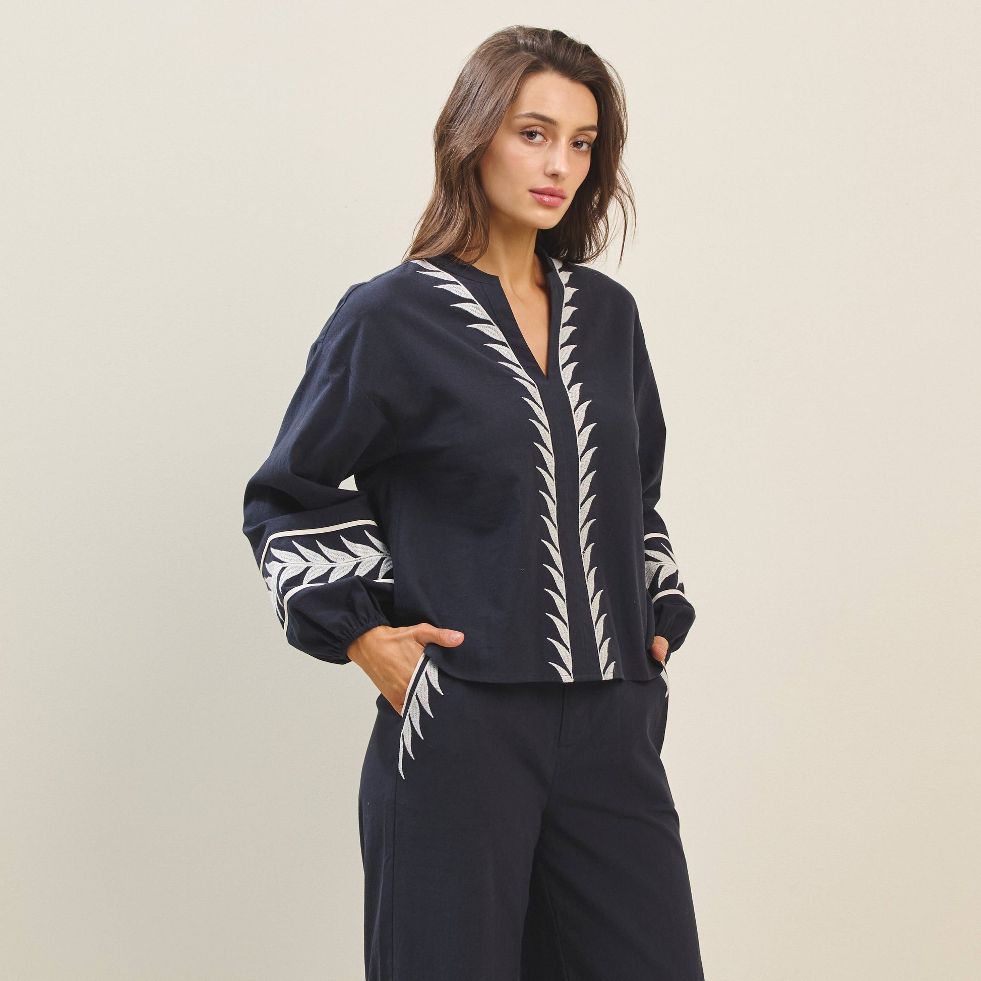Add a splash of charm to your wardrobe with this Embroidered Long Sleeve V-Neck Top. Its delicate embroidery brings a touch of whimsy, while the cozy long sleeves keep you comfy all day. Perfect for layering or wearing solo, this top is ready to brighten up any outfit with a wink and a smile!