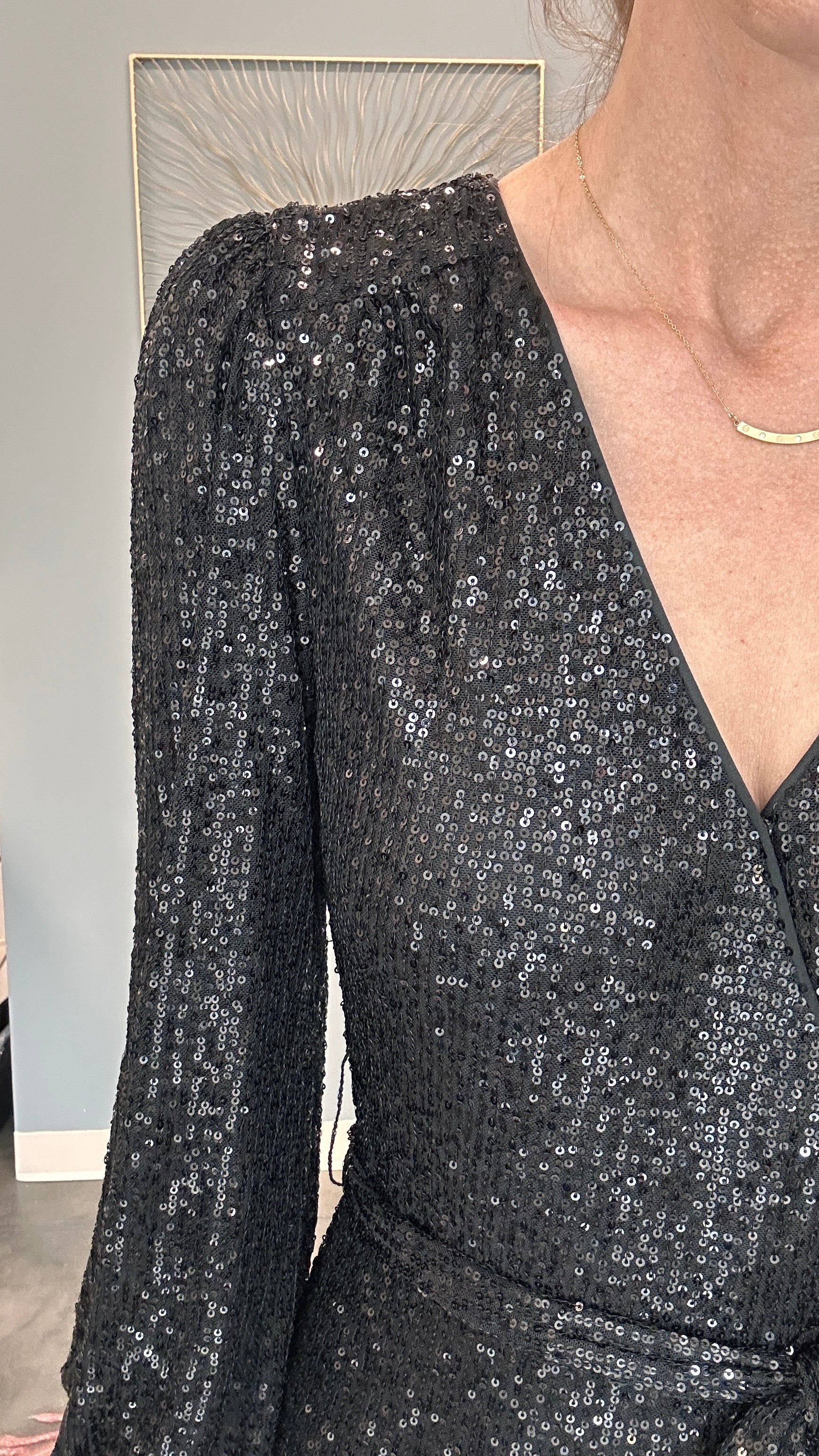 This Sequin Jumpsuit is the ultimate show-stopper. Its dazzling sequin design is perfect for making a statement at any event. Be the center of attention and exude confidence in this eye-catching piece. Guaranteed to turn heads and make you feel like a star.