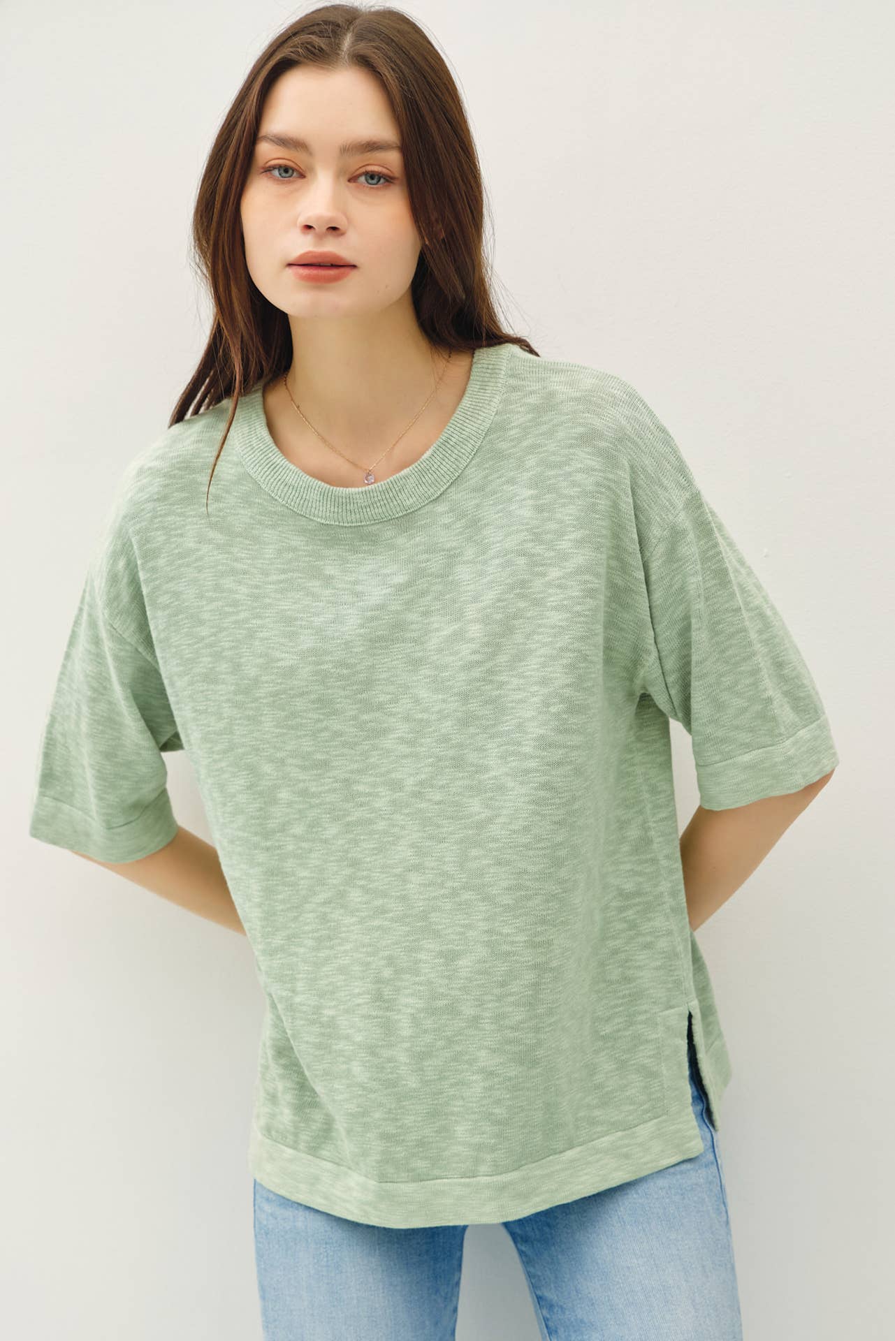 Introducing the Short Sleeve Slub Cotton Sweater - perfect for a relaxed and comfortable fit. Made from high-quality cotton, this sweater offers maximum breathability and softness. Stay cool and comfortable all day long with our slub cotton fabric.