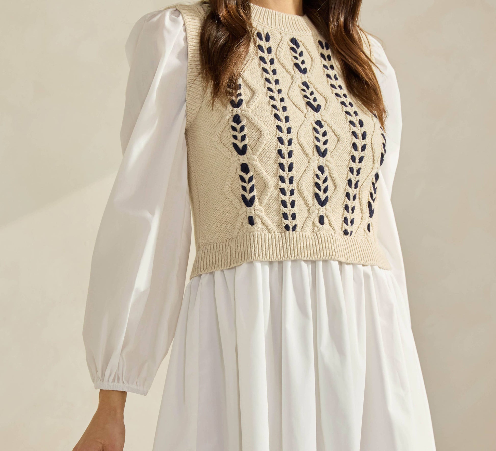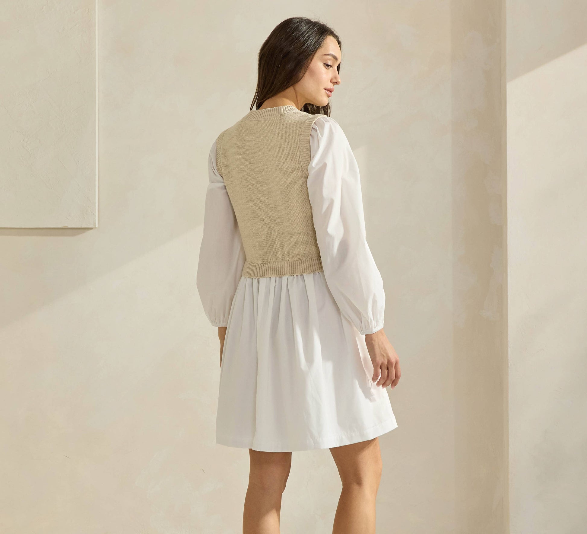 Step out in style with the Sweater Poplin Combo Mini Dress, where cozy meets chic. This playful blend pairs soft sweater fabric with crisp poplin for a look that’s both comfy and eye-catching. Perfect for days when you want to feel relaxed but still turn heads, this mini dress adds a fun twist to your wardrobe essentials.